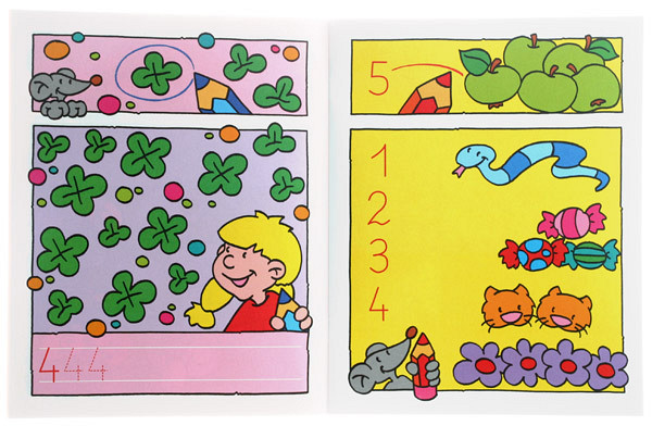 Otroci se s pomočjo delovnega zvezka na igriv način učijo šteti. Zbirka barvnih delovnih zvezkov za otroke stare od 4 do 6 let obsega sledeče naslove: Pišem, Štejem, Oblike in barve, Opazujem. Preberite več