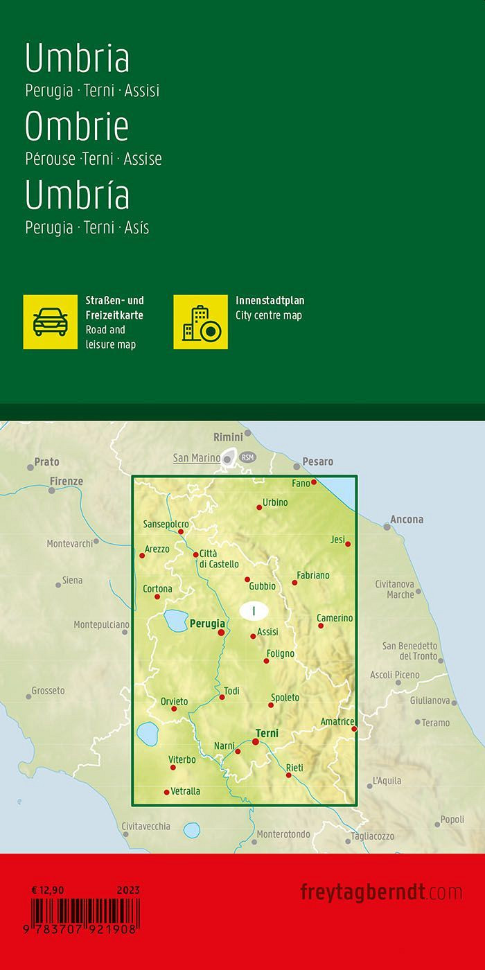Cestna karta Umbrije v merilu 1:150.000 vsebuje vse pomembne informacije za dopustnike, ki si jo želijo obiskati: turistične znamenitosti, kampi, razdalje v kilometrih in karte večjih mest (Perugia). Zaradi podrobnega merila je artikel primeren tudi kot kolesarski zemljevid. Preberite več