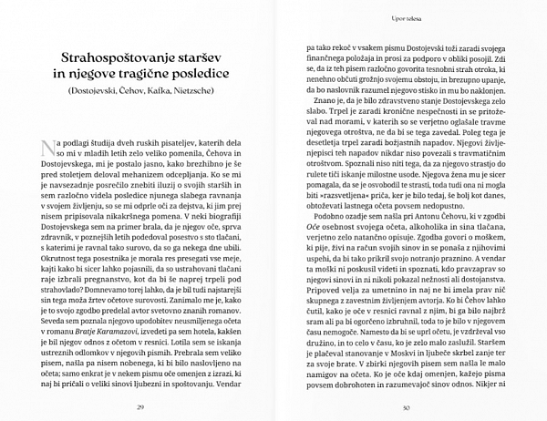 Alice Miller v tej knjigi, ki je prvič izšla leta 2004, obravnava povezavo med čustvovanjem in boleznimi posameznika. Ob bolezni, depresiji, odvisnosti od drog, anoreksiji itd. gremo skozi notranji konflikt med tem, kar čutimo, in tem, kar bi radi čutili. Na eni strani se odziva naše telo, ki ohranja spomin na našo preteklost in zlasti na morebitno neprimerno ravnanje naših staršev v otroštvu; na drugi strani sta dejavna tudi naš um in volja, pogojena s tradicionalno moralo in vzgojo, da moramo ne glede na vse ljubiti in spoštovati te iste starše. Alice Miller na tej točki utemeljeno zavrača četrto božjo zapoved - Spoštuj očeta in mater, da boš dolgo živel in ti bo dobro na zemlji. Starši, ki svoje otroke zlorabljajo, si ne zaslužijo njihovega spoštovanja.