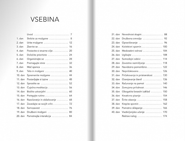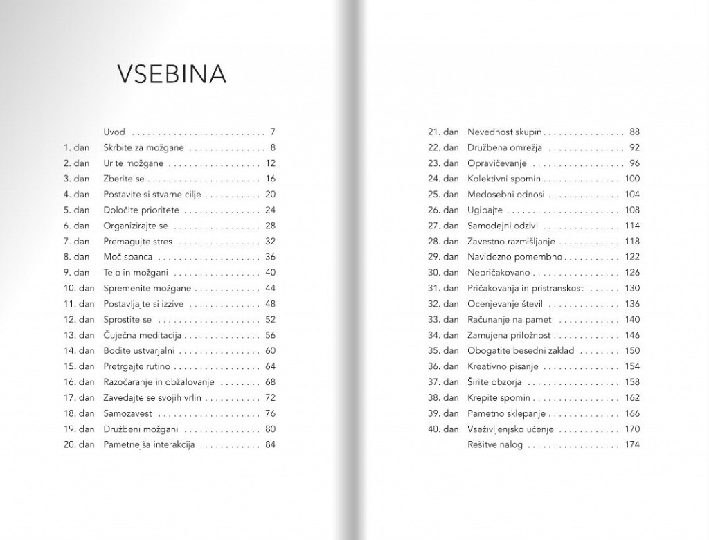 V 40 dneh lahko izurite, obnovite in vzdržujete svoje umske sposobnosti! Mit, da človek uporablja le nekaj odstotkov zmožnosti možganov, ne drži. Resnica je ta, da se moramo vsi nenehno soočati z velikim številom informacij z vseh strani in smo zato vsakodnevno izpostavljeni pretiranemu stresu, umskemu naprezanju in tesnobi.