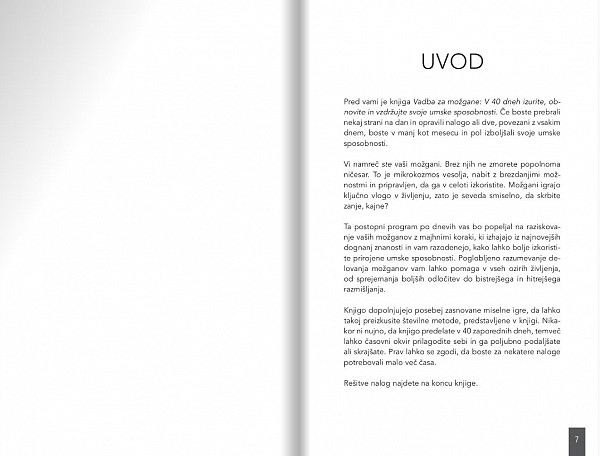 Dr. Gareth Moore je razvil 40-dnevni program vaj, tehnik in praktičnih nalog, posebej zasnovan za starejše osebe, ki vam bo pomagal pri umski pripravljenosti, sposobnosti razumevanja in hitrosti razmišljanja. Pravilne rešitve vseh vaj so opisane na koncu knjige.