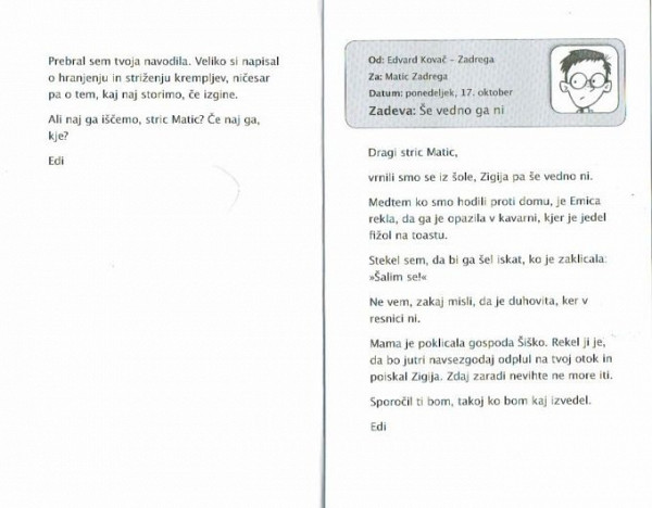 »Dragi stric Matic, Zigi noče iz omare s perilom. Še vedno ni ničesar pojedel. Niti ene čokoladne kroglice. Zares me skrbi zanj.« Preberite več