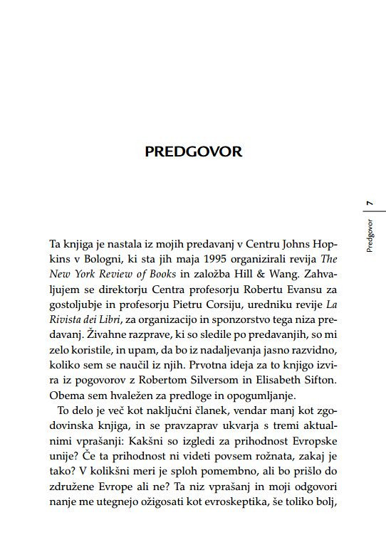 Judt se posveti razmišljanju o prihodnosti razširjene Evropske unije, do katere točke se lahko širi, kateri so kriteriji, ki določajo ustreznost države za priključitev in kaj Evropo sploh definira. Čeprav poudari, da je sam navdušen Evropejec in priznava, da je Evropska unija izjemen dosežek, njegovi pogledi na njeno prihodnost niso vedno pozitivni. Po njegovem mnenju unija ne more izpolnjevati obljube po vse tesnejši zvezi med članicami in hkrati nenehno sprejemati nove države. Judt zato trdi, da čeprav je ideja o združeni Evropi mnogo bolj privlačna kot stanje, ki je na tem območju vladalo pred združitvijo, realnih verjetnosti za to, da bi kot taka lahko uspela, ni.