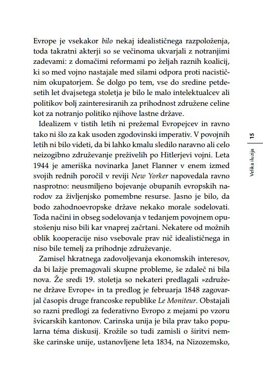 TONY JUDT (1948–2010) je bil eden najpomembnejših zgodovinarjev in političnih mislecev svojega časa ter predavatelj evropskih študij na Univerzi v New Yorku. Glavno področje njegovega preučevanja je bila zgodovina Evrope, pisal pa je tudi o aktualnih političnih dogodkih in o izraelskem problemu, predvsem v zadnjih letih svojega delovanja. Napisal je več kot deset del na temo Evrope in njene zgodovine, sodeloval pa je tudi z mnogimi revijami v Ameriki in po svetu, med drugim z The New York Review of Books in The New York Times. Velika iluzija (1996) je po delih Povojna Evropa: 1945–2005 (2005, sl. prevod 2007) in Deželi se slabo godi (2010, sl. prevod 2011) in memoarskem delu Zatočišče spomina (2010, sl. prevod 2012) njegovo četrto delo, ki bo prevedeno v slovenščino. Kljub temu, da je delo izšlo pred skoraj dvajsetimi leti, obravnava vprašanja, ki so v Evropi aktualna še danes.
