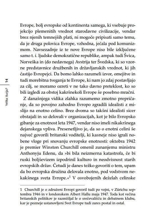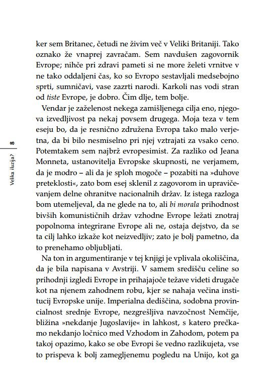 Delo Velika iluzija poudari pomembnost kritičnega razmišljanja o mitu »Evrope«, saj nas le to lahko pripelje na pot do reševanja problemov, s katerimi se združena Evropa sooča. Opomni nas na to, da je Evropa res več kot le geografski pojem, a taka, kot jo poznamo danes, nedvomno ni odgovor na probleme. Čeprav je združitev v nekaterih pogledih zaželena in koristna, nikakor ni nujna. Kot zapiše Judt sam: »Opomniti se moramo ne le na to, da smo skozi čas veliko dosegli, ampak tudi na to, da je bila evropska skupnost, ki je k temu pripomogla, le sredstvo, ne pa cilj.«