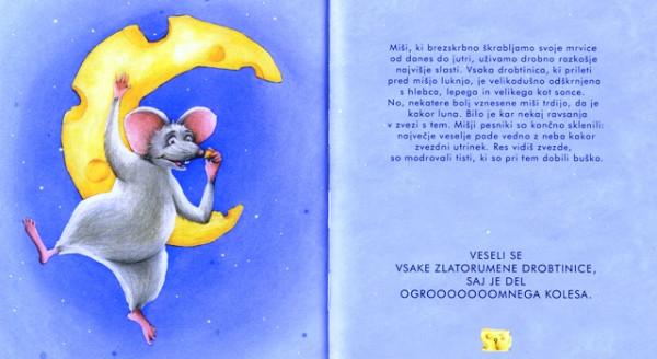 Knjiga vsebuje 12 modrosti, ki jih spremlja enako število kratkih zgodbic in je namenjena modrovanju. Primerna je tako za manjše otroke, ki si radi ogledujejo ilustracije in lahko preberejo stavek z velikimi tiskanimi črkami, vsebinsko pa je zanimiva predvsem za osnovnošolske otroke, starše in vzgojitelje. Je odlična iztočnica za pogovor o vrednotah in razmišljanje o uspešnem, zadovoljnem in kvalitetnem življenju. Glavni motiv knjige, ki je sir, lahko ustrezno nadomestimo npr. z denarjem, prijateljem, uspehom, srečo, ljubeznijo … skratka z vsem, o čemer se želimo pogovarjati. Preberite več