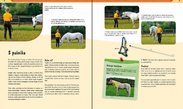 Ta knjiga o konjih ni le sklop suhoparnih navodil za ravnanje s konji in jahanje. Gre za predstavitev posebnosti jahanja kot športa, v katerem s človekom enakopravno sodeluje čudovito bitje konj. Zato je živahna, presenetljiva in otrokom ter konjem čim bolj prijazna.