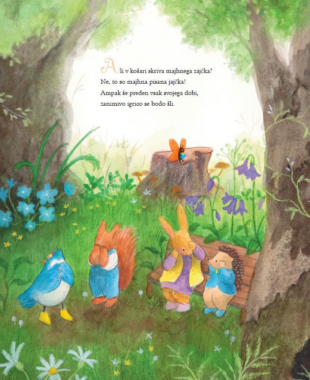 Mama Zajklja se iz mesta vrne s košaro, v kateri skriva presenečenje ... velikonočna jajčka! Preberite več