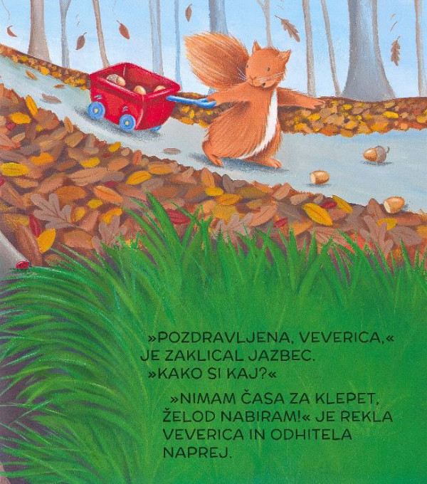 Veverica vneto nabira želod in nima časa, da bi se igrala s prijatelji. Toda ko stvari gredo po zlu, veverica potrebuje malo pomoči. Jo bodo iz zagate rešili prijatelji? Preberite več