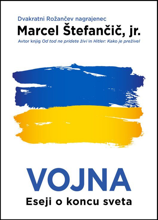 Esejist in filmski kritik Marcel Štefančič, jr. (1960) že dolgo publicistično spremlja dogajanje po vsem svetu in pri nas, njegove knjige pa se vsebinsko raztezajo od zgodovine filma, do družbeno analitičnih knjig. Angažirane eseje je pisal že v prejšnjem stoletju, zbrani so v obsežni knjigi Greatest hits, po letu 2000 pa je objavil številne knjige o naši družbeni realnosti, denimo serijo knjig o Bushevi Ameriki, pa serijo angažiranih esejističnih knjig, med katerimi je za knjigo Kdor prej umre, bo dlje mrtev (2014) prejel Rožančevo nagrado, za briljantni zgodovinski paraboli Hitler: kako je preživel (2015) in Črna knjiga kapitalizma (2017) pa je bil zanjo nominiran. V najnovejši esejistični zbirki Vojna: eseji o koncu sveta, je pod analitični drobnogled vzel aktualno rusko invazijo na Ukrajino.