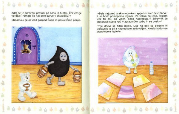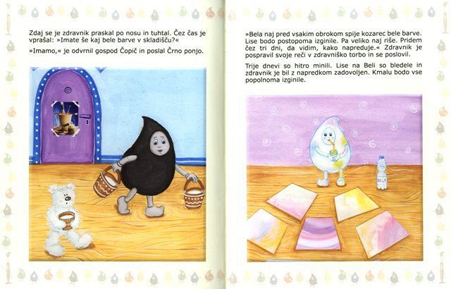 Deželo barv so si barve zelo lepo uredile. Jezero in potoček sta kristalno modra, drevesa imajo košate zelene krošnje, travnik je poln pisanih cvetlic. Na nebu med puhastimi belimi oblački kraljuje sonce. Čez nebo se razteza mavrica, pod njo pa vasica. V njej živijo barve. Preberite več