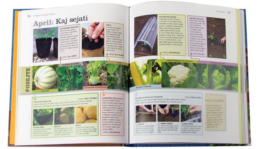 Opisani so najboljši načini gojenja rastlin, pri izbranih vrtninah pa so poleg najbolj znanih sort naštete še tiste, ki jih je vredno poskusiti. Nasveti in opravila so uporabni v vseh vrstah vrtov, od majhnih dvorišč do vrtičkov in pravih zelenjadnih vrtov.