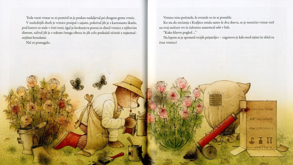 Florjan je bil najboljši in najprijaznejši vrtnar v vsem Medvedjem kraljestvu. Nekega dne si je začel beliti glavo s tem, kako naj medvedji Kraljici izpolni posebno željo in ji prinese črno vrtnico. Kmalu se je izkazalo, da je njihovo gojenje povezano z obilico nenavadnih, srhljivih reči in skrivnosti, ki bi lahko za vekomaj spremenile mirno življenje v kraljestvu. To je zgodba, ki mlade bralce spodbudi, da se predajo skrivnostnim zapletom v knjigi in skupaj z njenimi junaki premišljujejo o poštenosti, prijateljstvu in o posameznikovi odgovornosti za svoja ravnanja.Mehka vezava, 22 x 24,5 cm, 64 strani.