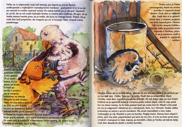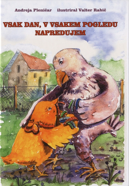 »Vsak dan, v vsakem pogledu napredujem« je naslov prve slikanice iz zbirke »Vzgojnice za male in velike«.Je duhovita, vzgojna in motivacijska slikanica. Dogaja se na kurjem dvorišču, kjer se v kokošjem gnezdu zvalita orliča. Eden (p)ostane kura, ker živi v prepričanju, da ne more leteti, drugi pa vzleti in odleti v svobodo. Sporočilo pravi, da smo tisto, kar mislimo, da smo. Zato je tako pomembno otroke spodbujati in jim dvigati samozavest ter jim vcepljati prepričanje, da stvari zmorejo tako v vrtcu, šoli, doma, kot tudi na sploh v življenju.Slikanica je namenjena predvsem osnovnošolskim otrokom, ob branju katere se vsi zelo zabavajo, hkrati pa se tudi veliko naučijo. Trda vezava, 21,5 x 30 cm, 22 strani.