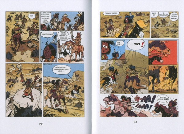 Yakari je prav poseben indijanski deček. Lahko se pogovarja z živalmi in zelo rad sanjari, zaradi česar velikokrat zaide v težave.Yakarijevemu plemenu grozi lakota, saj pomlad to leto zamuja, z njo pa tudi črede bizonov, ki za pleme pomenijo preživetje. Yakari sledi svojim sanjam in sreča belega bizona, vodjo velike črede teh mogočnih živali. Mu ga bo uspelo prepričati, naj se njegova čreda vrne na stare pašnike?Trda vezava, 15 x 22 cm, 46 strani.