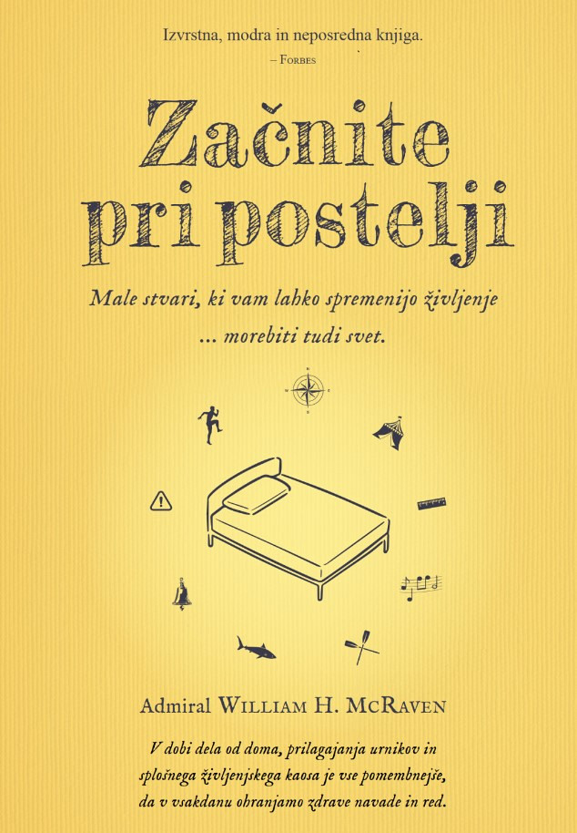 Če imate pri načrtovanju boljšega in učinkovitejšega življenja radi disciplino, potem je to prava knjiga za vas. Napisal jo je upokojeni admiral William H. McRaven (1955), ki ima za seboj kariero na različnih področjih, saj je bil poveljnik vseh ameriških specialnih enot, pa tudi rektor teksaškega UT Systema, ki združuje več univerz in bolnišnic, zdaj pa je v nadzornih svetih velikih podjetij.