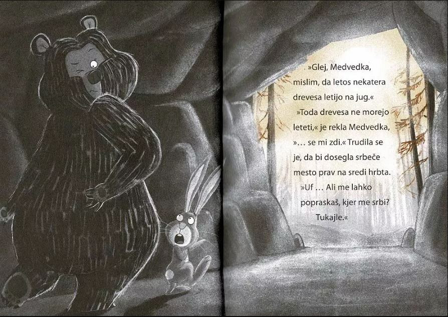 Zajec je presenečen. Zdi se mu, da nekatera drevesa v dolini letijo prezimit na jug. Njegova prijateljica Medvedka je prepričana, da drevesa ne morejo leteti. Potem se zelo blizu zasliši glasen HRSK! Kot bi največji zajec na svetu jedel največji korenček na svetu.