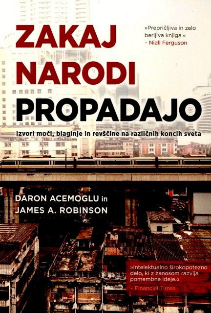 Svetovno znana ekonomista Daron Acemoglu in James A. Robinson sta na podlagi teoretskih znanj s področij ekonomije, politike in sociologije ter s pomočjo analize zgodovinskih dejstev, ki segajo od časov rimskega imperija vse do današnjih dni, utemeljila svojo teorijo politične ekonomije, s katero osvetlita ključne vidike za učinkovit gospodarski razvoj narodov in držav oziroma razloge za njihovo zaostajanje.
