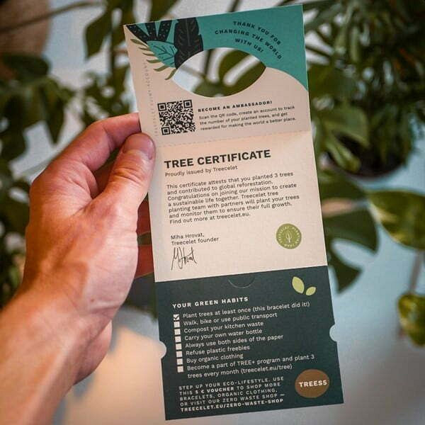 - Vsaka zapestnica financira 3 posajena drevesa v Indoneziji in ozaveščanje na družabnih omrežjih.