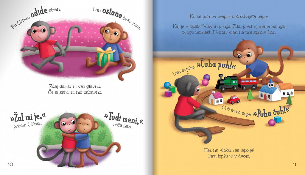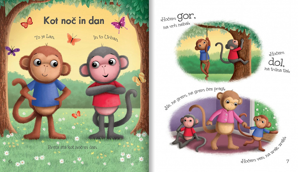 Ilustrirana zbirka šestih zgodb v rimah je kot nalašč za dveletnike. Od kužka, ki zvečer noče v posteljo, prek zajčka, ki zna že veliko reči, do opic, ki se učita deliti stvari - malčki bodo ob poslušanju zgodb in opazovanju prisrčnih ilustracij potonili v sladek sen.