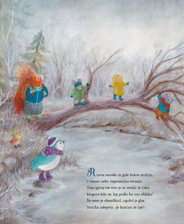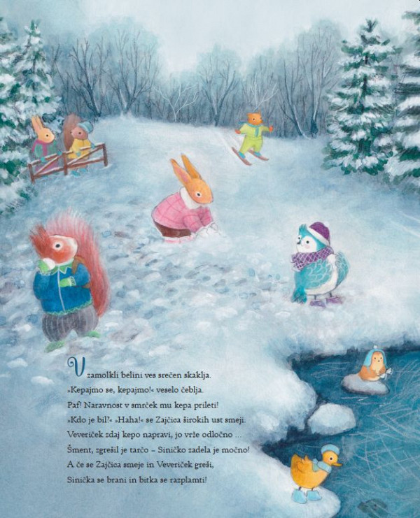 Med živalmi v gozdu vlada pričakovanje nečesa posebnega. Z neba že začenja naletavati ... sneg! Zajčica, Sinička in Veveriček se igrajo skrivalnice. Preberite več