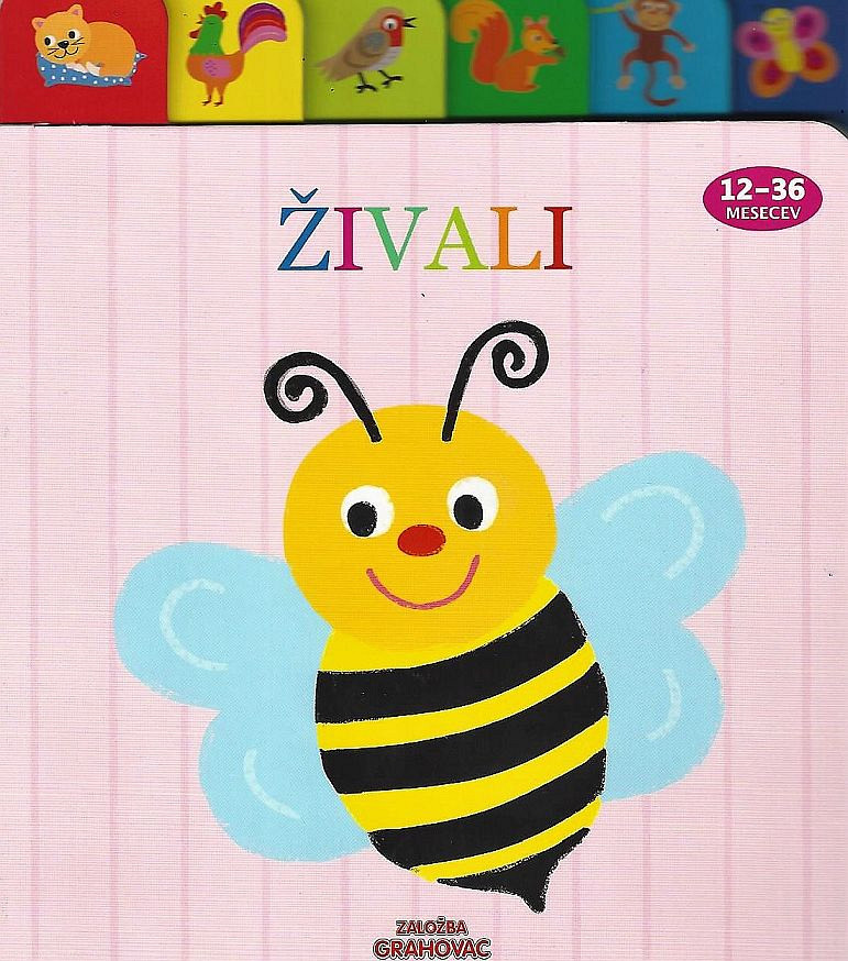 Zajec, konj, jež, slon … S to poučno slikovno knjigo, bogato z barvnimi ilustracijami, bo vaš otrok na zabaven način obogatil svoj besedni zaklad. S pomočjo zavihkov bo vaš malček hitro našel svojo najljubšo stran. Za ure in ure užitkov ob gledanju in branju. Ta knjiga je na voljo v zbirki Račke (12-36 mesecev).Kartonka z zavihki in zaobljenimi robovi, velikost: 17 x 14,5 cm, 12 strani.