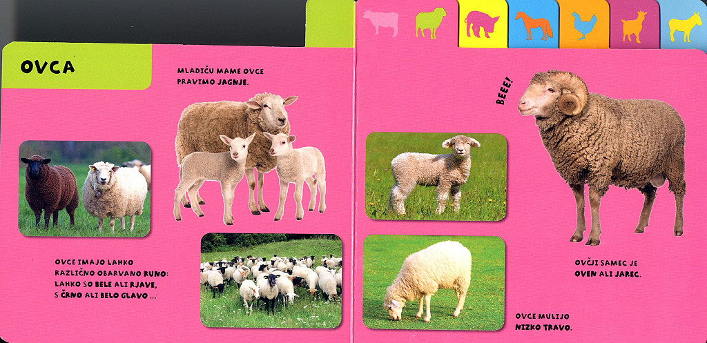 Kokodak! Ojnk, ojnk! Slikanica vsebuje fotografije živali na kmetiji. Zareze na vrhu strani bodo otroku pomagale hitro poiskati najljubšo žival. Za veliko prijetnih uric.Kartonka, 16 x 16 cm, 14 strani.