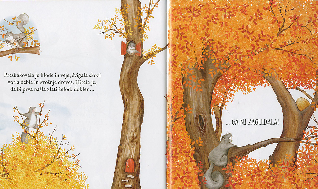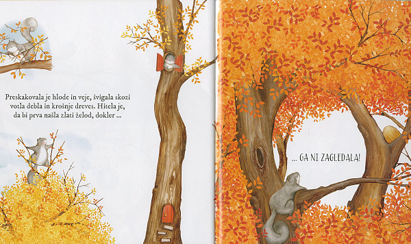 ŽVIIZ! Veverica se je kar se da hitro pognala skozi krošnje dreves. Toda pozor, kajti Lov na zlati želod je letos ekipni dogodek. Veverica se zmrduje, a kljub temu prijavi tudi svoje prijatelje.