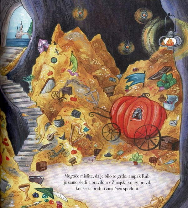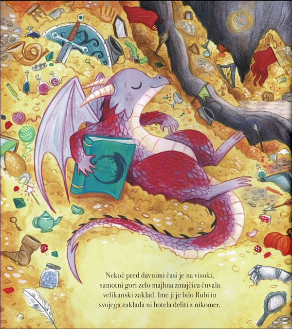 Rubi je zelo prijazna zmajčica. Upošteva vsa zmajska pravila: Krade VSEM in z NIKOMER ne deli svojih zakladov. Živali so naveličane tega. Ko bi le lahko spremenile pravila …