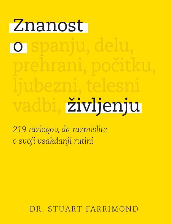 219 razlogov, da razmislite o svoji vsakdanji rutini! Raziščite znanost o vsakodnevnih življenjskih navadah in naj bo vaš dan s pomočjo strokovnih dognanj bolj zdrav, srečnejši in produktivnejši. Številne dejavnosti, ki jih imamo za samoumevne, pravzaprav spodkopavajo našo blaginjo. V tej prelomni knjigi nova znanost ovrže stara prepričanja, ko se dr. Stuart Farrimond z očesom znanstvenika ozre na naš običajni vsakdan.