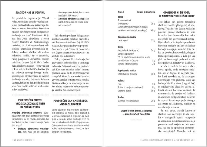 »Doktorju Gioffreju sem zaploskala za njegovo delo. Dolgo sem preučevala učinke sladkorja in ugotovila, da nas oropa zdravja, kar je povsem res. Povezan je s srčnimi boleznimi, napada periferno živčevje, ohromi imunski sistem in tekmuje z vitaminom C, kar povzroči ogromno škode, ki se jo da popraviti le z omejitvijo uživanja sladkorja. Doktor Gioffre ni le prepoznal težave, ampak vam ponuja tudi načrt, kako premagati odvisnost od sladkorja. Še posebej mi je všeč poglavje o ponovni mineralizaciji telesa, kjer je poudarek na mojem najljubšem mineralu magneziju, ki je tudi najpomembnejši.« - Carolyn Deal, doktorica medicine, naturopatka, avtorica The Magnesium Miracle, Sugar Without the Icing