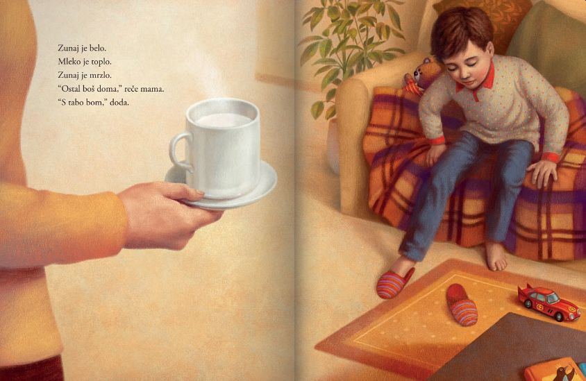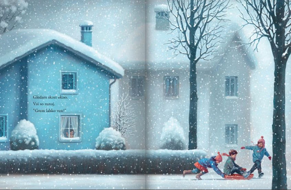 Sneži, vse je že belo, zunaj vlada mraz. Otroci se kepajo in sankajo, vendar ne vsi … Deček bi se jim neskončno rad pridružil, a mora ostati doma. Na srečo je ob njem mama, ki ima zanj čudovito presenečenje! Preberite več