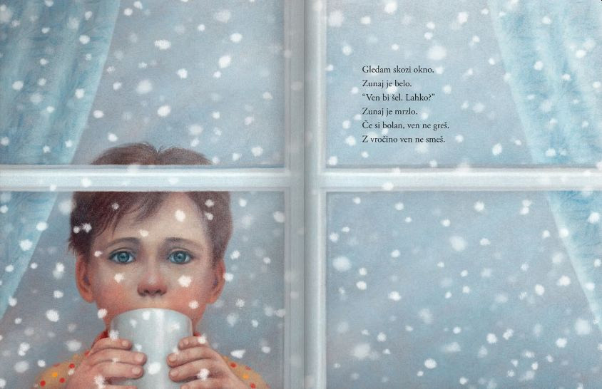 Slikanica, ki nam z besedami, lahkimi kot snežinke, in ilustracijami, toplimi kot objem, ogreje srce in očara oči.