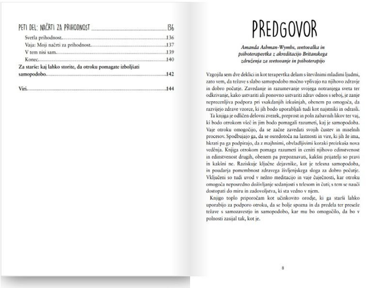 »Ta knjiga je odličen delovni zvezek, preprost in poln zabavnih likov ter vaj, ki bodo otrokom všeč in jim bodo pomagali razumeti, kaj je samopodoba. Vaje otroku omogočijo, da se začne zavedati svojih čustev in miselnih procesov. Spodbujajo ga, da se osredotoča na lastnosti in vire, ki jih že ima, hkrati pa ga podpirajo, da z majhnimi, obvladljivimi koraki preizkuša nova vedenja. Knjiga otrokom pomaga razumeti in ceniti njihovo edinstvenost in edinstvenost drugih, obenem pa prepoznavati, kakšni prijatelji so pravi in kakšni ne.